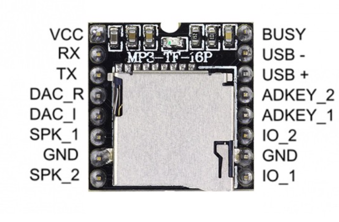 Máy nghe nhạc MP3-TF-16P cho Arduino là một mô-đun MP3 giá rẻ và nhỏ với một đầu ra đơn giản trực tiếp cho loa. Mô-đun có thể được sử dụng như một mô-đun độc lập với pin kèm theo, loa và các nút nhấn hoặc được sử dụng kết hợp với Arduino UNO hoặc bất kỳ loại nào khác có khả năng RX / TX.